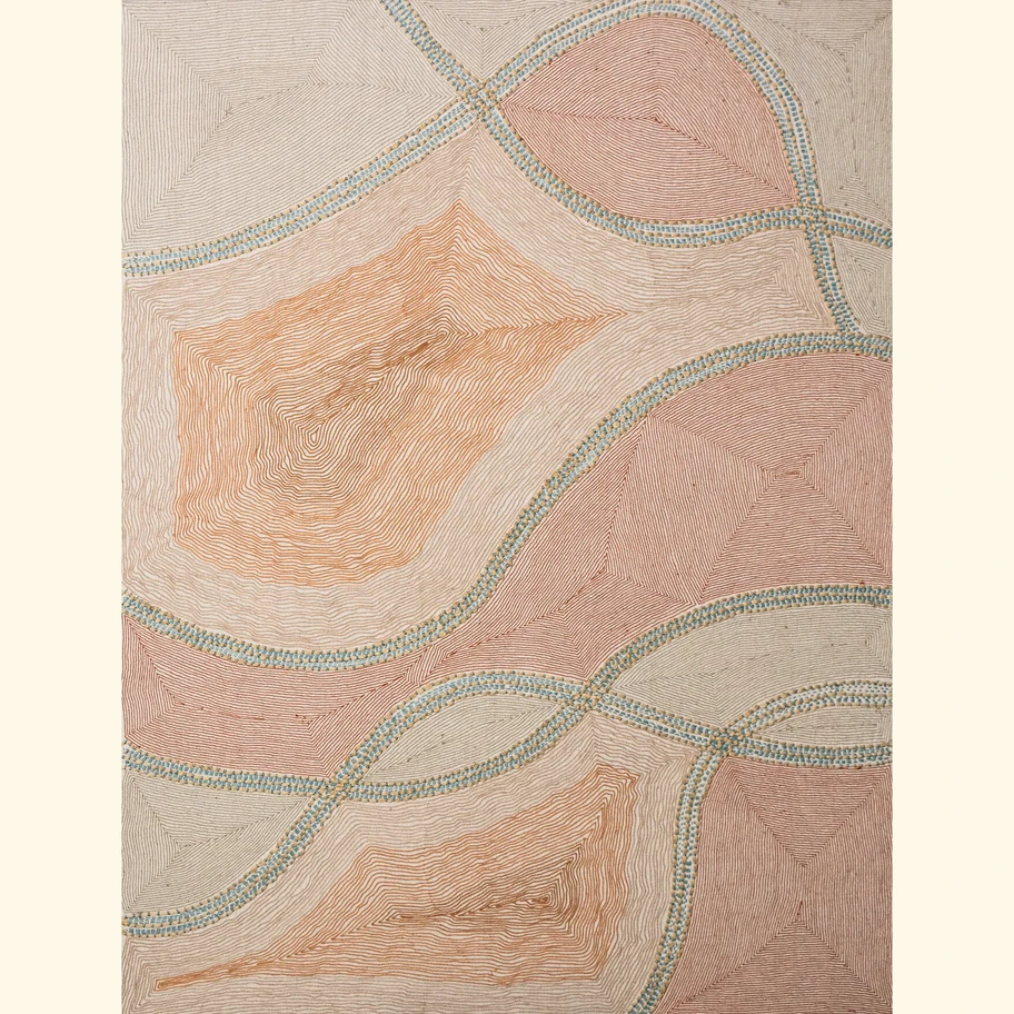 "Prayag" celebrates Ganga as a confluence, where rivers merge into a mighty flow. Crisscrossing streams form dynamic intersections, evoking the rich texture of an alluvial plain and symbolizing unity in diversity.
