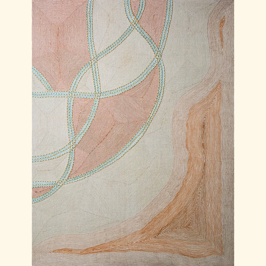 "Prayag" celebrates Ganga as a confluence, where rivers merge into a mighty flow. Crisscrossing streams form dynamic intersections, evoking the rich texture of an alluvial plain and symbolizing unity in diversity.